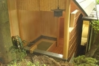 Room "Tsubaki" of the open-air bath with views of the back garden. Bathtub is made of wood Koyamaki excellent. Please spend a relaxed in the bath sink over Iwamuro Hot Springs and the smell of wood.
