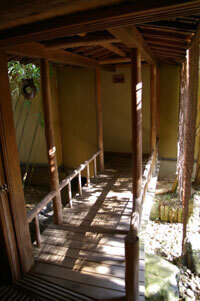 Room “HOURAI" is on the second floor overlooking the beautiful Japanese back garden. It is a room with a high ceiling can feel the traditional Japanese architecture of joinery such as window frames and the round window.